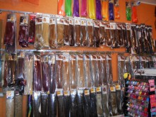 انواع کلاه گیس، موهای کلیپسی، موهای متری صاف، وِز، فر درشت، فرS، بافت، موجدار، رنگ های فانتزی سردوخت و دو سر باز، انواع شنیون های آماده مویی، چتری، تور شنیون، انواع تاج های ژله ای، سنجاق های شنیون، تزئینات مو، مژه، ناخن، رنگ مو و سایر لوازم آرایشی و آرایشگاهی می باشد.